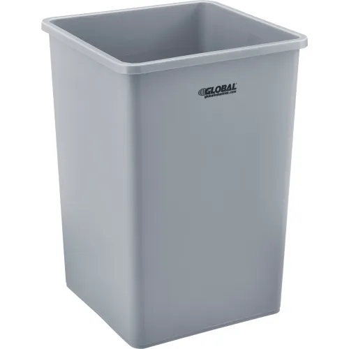 Global Industrial Square Plastic Trash Can, 35 Gallon, Gray