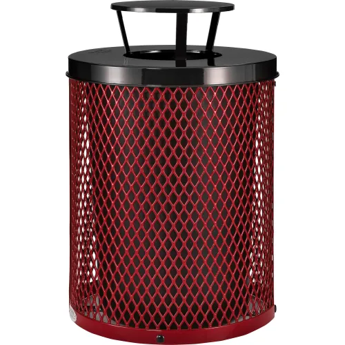Global Industrial Outdoor Diamond Steel Trash Can With Rain Bonnet Lid, 36 Gallon, Red