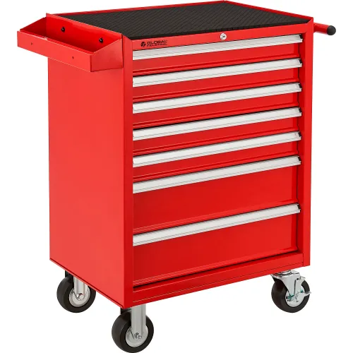 Global Industrial 26-3/8" x 18-1/8" x 37-13/16" 7 Drawer Red Roller Cabinet