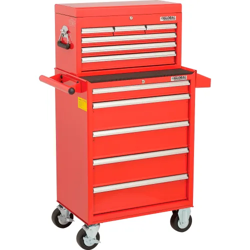 Global Industrial 26-3/8” x 18-1/8" x 52-9/16" 11 Drawer Red Roller Cabinet & Chest Combo