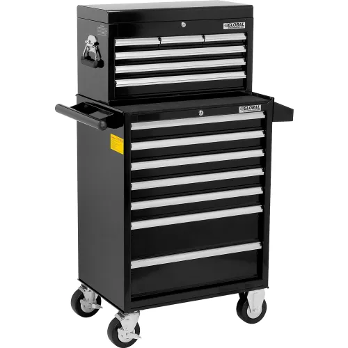 Global Industrial 26-3/8” x 18-1/8" x 52-9/16" 13 Drawer Black Roller Cabinet & Chest Combo