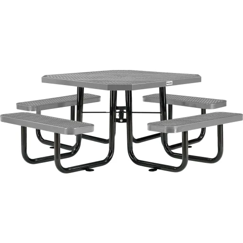 Global Industrial 46" Octagonal Picnic Table, Expanded Metal, Gray
