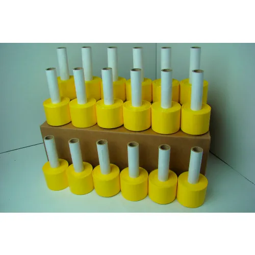 Global Industrial Bundle Stretch Wrap with Extended Core Handle, Cast, 3"W x 1000'L, Yellow Tint