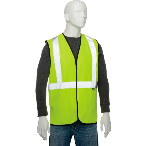 Global Industrial Class 2 Hi-Vis Safety Vest, 2" Reflective Strips, Solid, Lime, Size 2XL/3XL