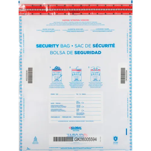 Global Industrial™ FraudStopper™ Tamper Evident Deposit Bag, 15"W x 20"H, Clear, 100/Pack