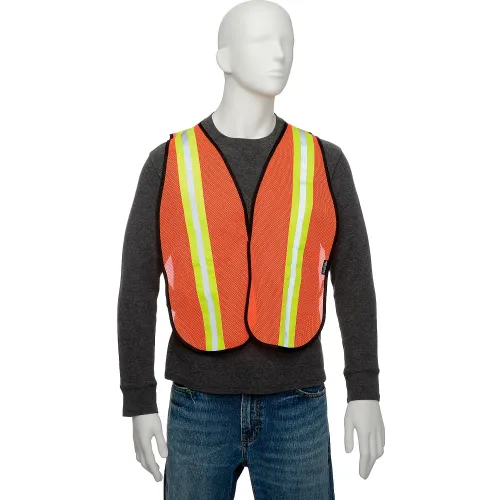 Global Industrial Hi-Vis Safety Vest, 2" Lime/Reflective Strips, Polyester Mesh, Orange, One Size