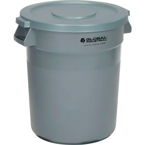 Global Industrial Plastic Trash Can with Lid - 20 Gallon Gray