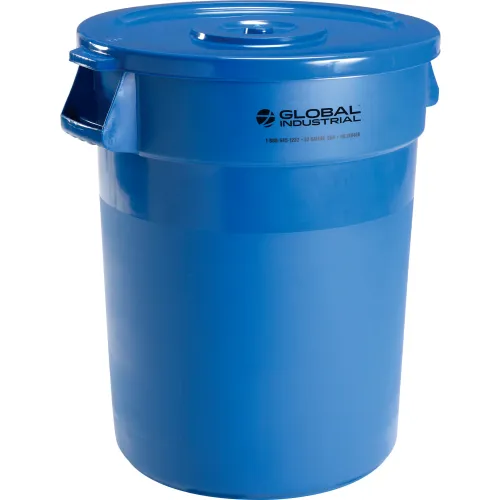 Global Industrial Plastic Trash Can with Lid - 32 Gallon Blue