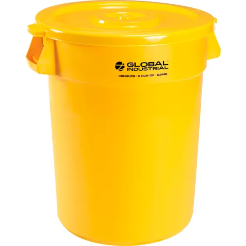Global Industrial Plastic Trash Can with Lid - 32 Gallon Yellow