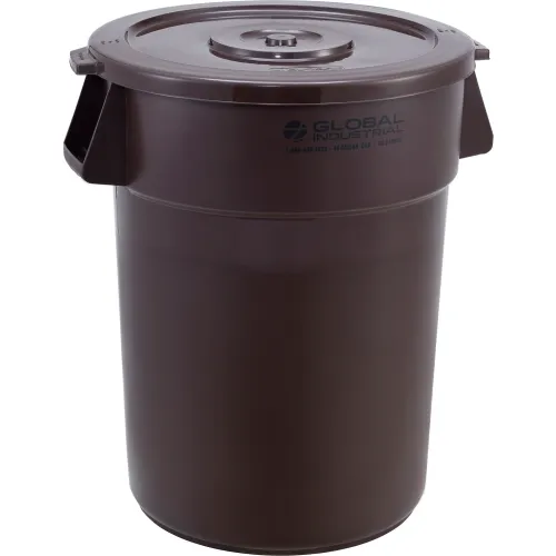 Global Industrial Plastic Trash Can with Lid - 44 Gallon Brown