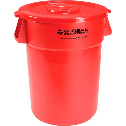 Global Industrial Plastic Trash Can with Lid - 44 Gallon Red