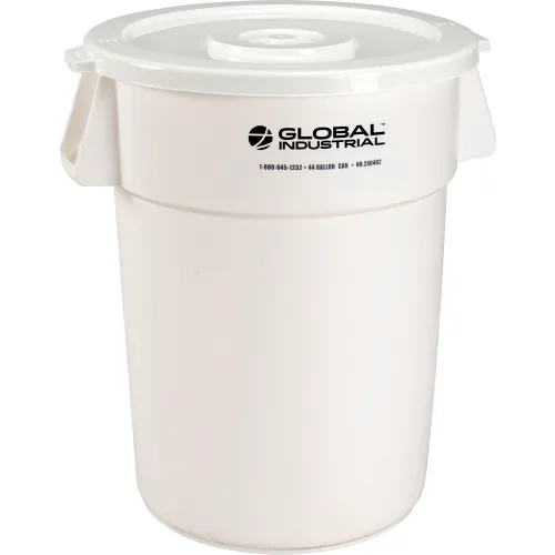 Global Industrial Plastic Trash Can with Lid - 44 Gallon White