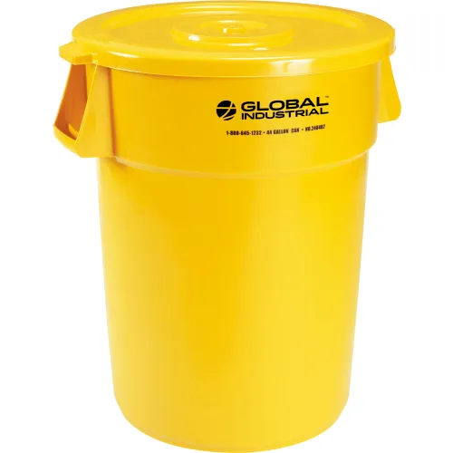 Global Industrial Plastic Trash Can with Lid - 44 Gallon Yellow