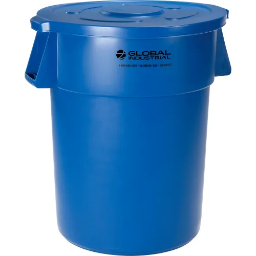 Global Industrial Plastic Trash Can with Lid - 55 Gallon Blue