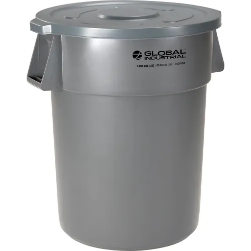 Global Industrial Plastic Trash Can with Lid - 55 Gallon Gray