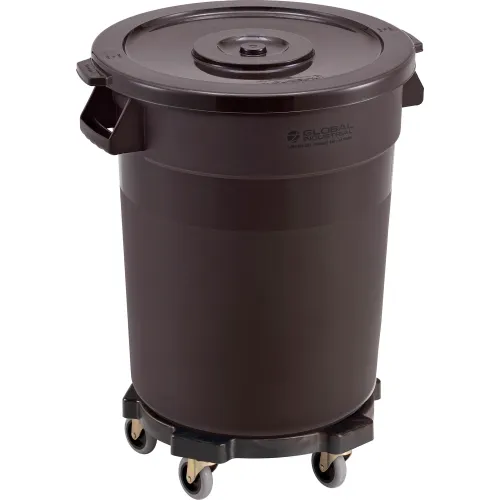 Global Industrial Plastic Trash Can with Lid & Dolly, 20 Gallon, Brown