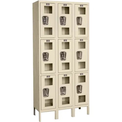 Global Industrial 3-Tier 9 Door Clear View Locker, 36"W x 18"D x 78"H, Tan, Assembled