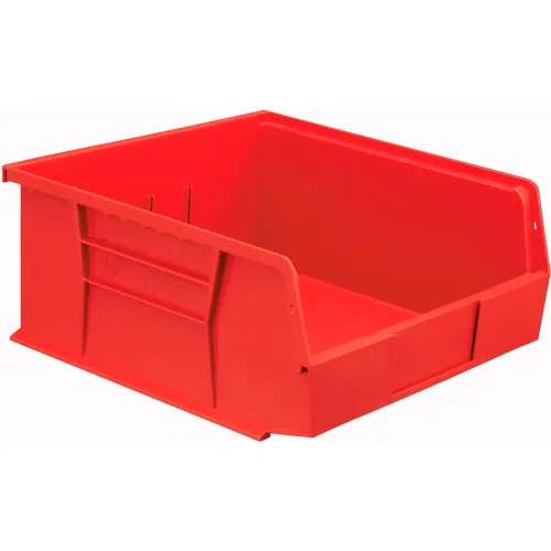 Global Industrial Plastic Hang & Stack Bin, 10-7/8"L x 11"W x 5"H, Red - Pkg Qty 6