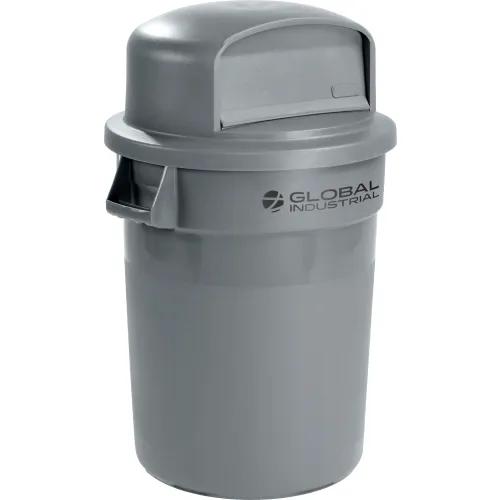 Global Industrial Plastic Trash Can with Dome Lid - 32 Gallon Gray