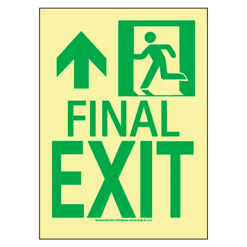 NMC Glow NYC Final Exit Forward/Left Side Sign, 24 Hour Glow, Plastic, 8"W x 11"H