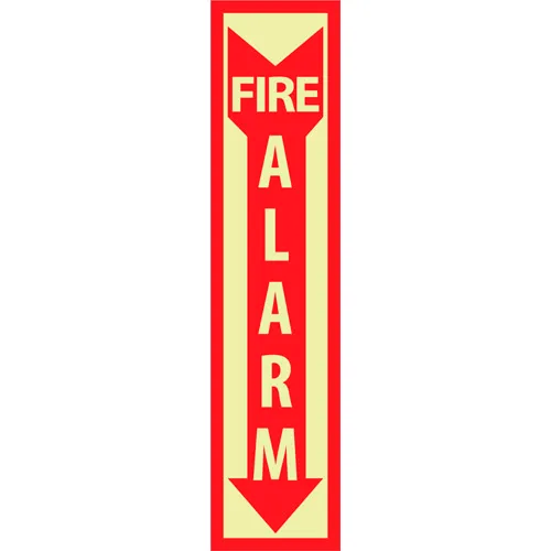 NMC Glow Fire Alarm Sign, 6 Hour Glow, Rigid Plastic, 4"W x 18"H