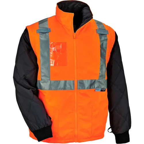 Ergodyne® GloWear® 8287 Hi-Vis Winter Jacket & Vest w/ Detachable Sleeves, Small, Orange
