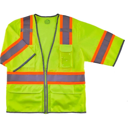 Ergodyne® GloWear® 8346Z Hi-Vis Two Tone Surveyor Vest, Zipper, Class 3, 2XL/3XL, Lime