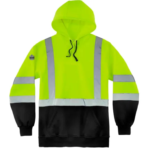 Ergodyne® GloWear® 8373 Hi-Vis Hooded Sweatshirt, Black Bottom, Class 3, M, Lime
