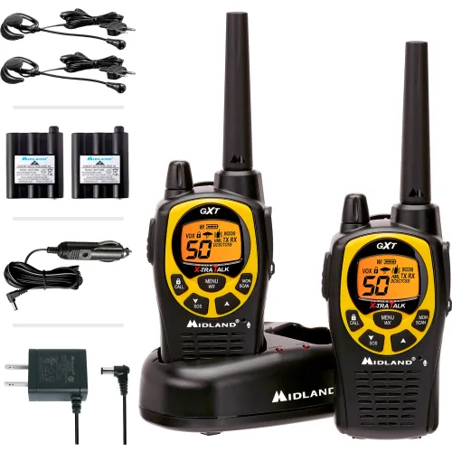 Midland® GMRS & FRS Two-Way Radio, 50 Channels, 462.55-467.7125 Mhz, Black/Yellow, Pack of 2