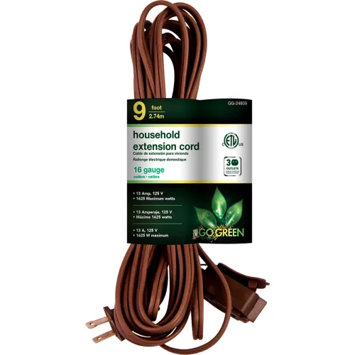 GoGreen Power, GG-24809-10, 9 Ft Household Extension Cord - Brown 10PK