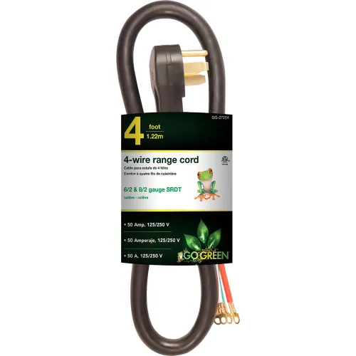 GoGreen Power, GG-27204, Range Cord Black - 4 Ft