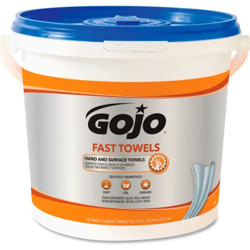 GOJO® FAST TOWELS Hand Cleaning Towels, 7.75 x 11, Fresh Citrus, Blue, 130/Bucket, 4 Buckets/CT