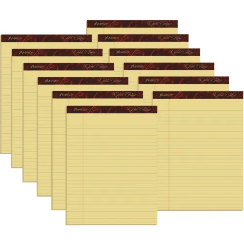 Esselte® Gold Fibre Legal Pad, 8-1/2" x 11-3/4", Wide Ruled, Canary, 50 Sheet/Pad, 12 Pads/Pack