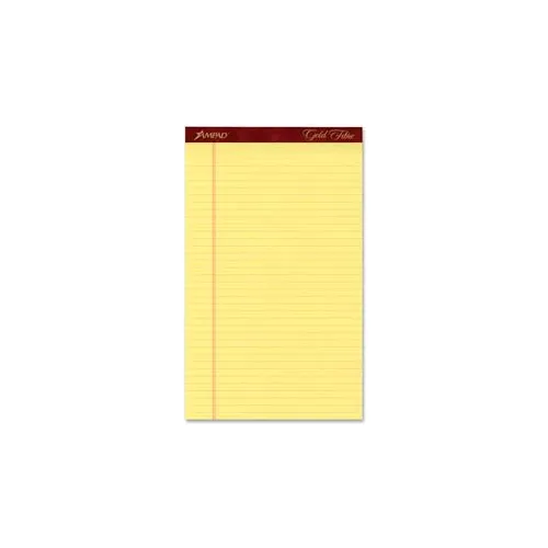 Esselte® Gold Fibre Pad, 8-1/2" x 14", Wide Ruled, Canary, 50 Sheets/Pad, 12 Pads/Pack