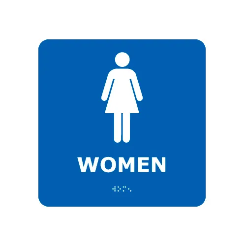NMC Graphic Braille Plastic Sign, Women w/ Symbol, 8"W x 8"H, Blue