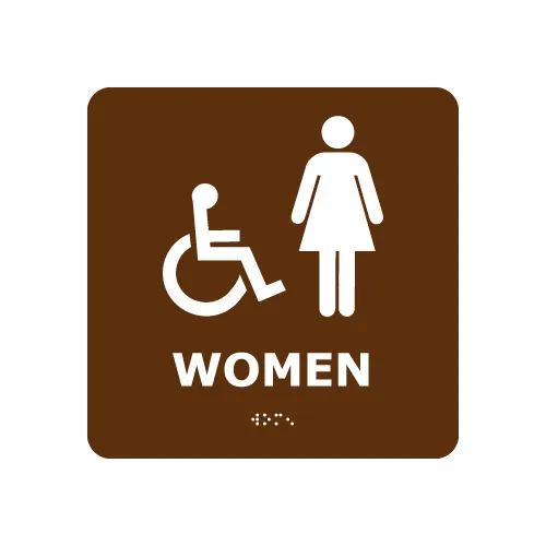 NMC Graphic Braille Plastic Sign, Women, 8"W x 8"H, Brown