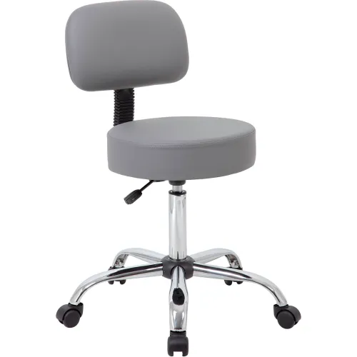 Boss Gray Caressoft Vinyl Medical Stool with Back Cushion - Gray