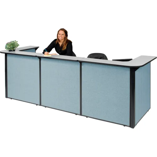Interion® U-Shaped Reception Station, 124"W x 44"D x 44"H, Gray counter, Blue Panel
