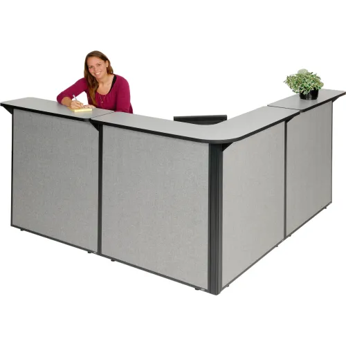 Interion® L-Shaped Reception Station, 80"W x 80"D x 44"H, Gray Counter, Gray Panel