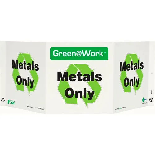 Zing Green at Work Tri-View Sign, Metals Only with Recycle Symbol, 20"W x 7-1/2"H, Black/Green/White