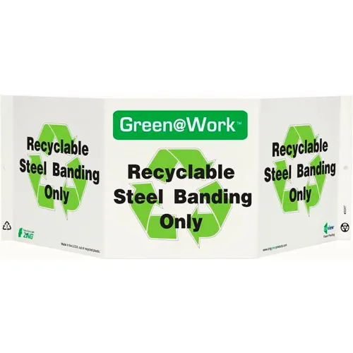 Zing Green at Work Tri-View Sign, Recyclable Steel Banding Only, 20"W x 7-1/2"H, Black/Green/White