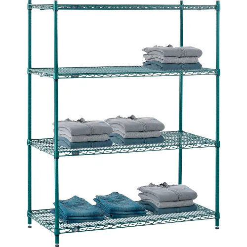 Nexel® 4 Shelf, Poly-Green® Wire Shelving Unit, Starter, 48"W x 24"D x 63"H