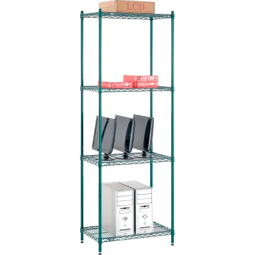 Nexel® 4 Shelf, Poly-Green® Wire Shelving Unit, Starter, 30"W x 18"D x 86"H
