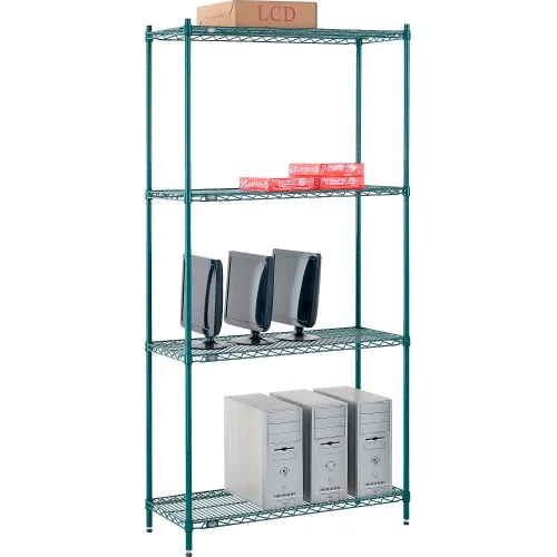 Nexel® 4 Shelf, Poly-Green® Wire Shelving Unit, Starter, 42"W x 18"D x 86"H