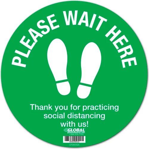 Global Industrial™ Green Please Wait Here Floor Sign, 12'' Round, Vinyl Adhesive