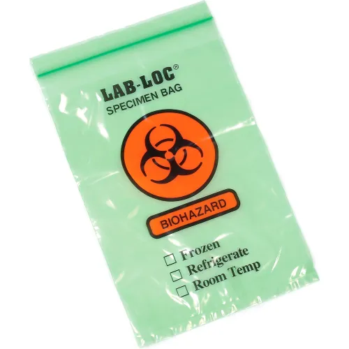 Reclosable 3-Wall Specimen Transfer Bag (Biohazard), 6" x 9", Green Tint, Pkg Qty 1000