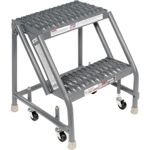 Grip 16"W 2 Step Steel Rolling Ladder 10"D Top Step - KDSR002162