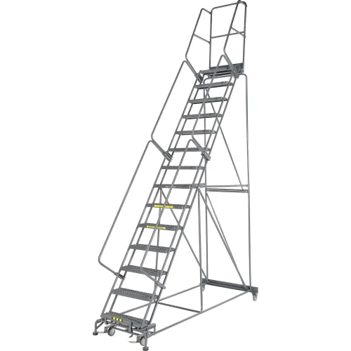 Grip 24"W 14 Step Steel Rolling Ladder 14"D Top Step - FS144014G