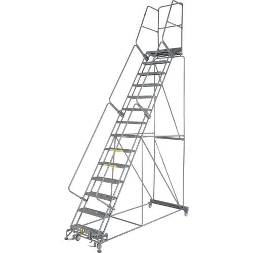 Grip 24"W 14 Step Steel Rolling Ladder 21"D Top Step - FS144021G