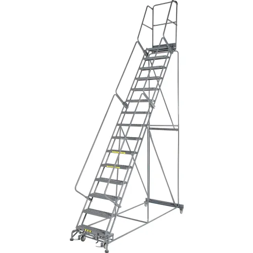 Grip 24"W 15 Step Steel Rolling Ladder 14"D Top Step - FS154014G